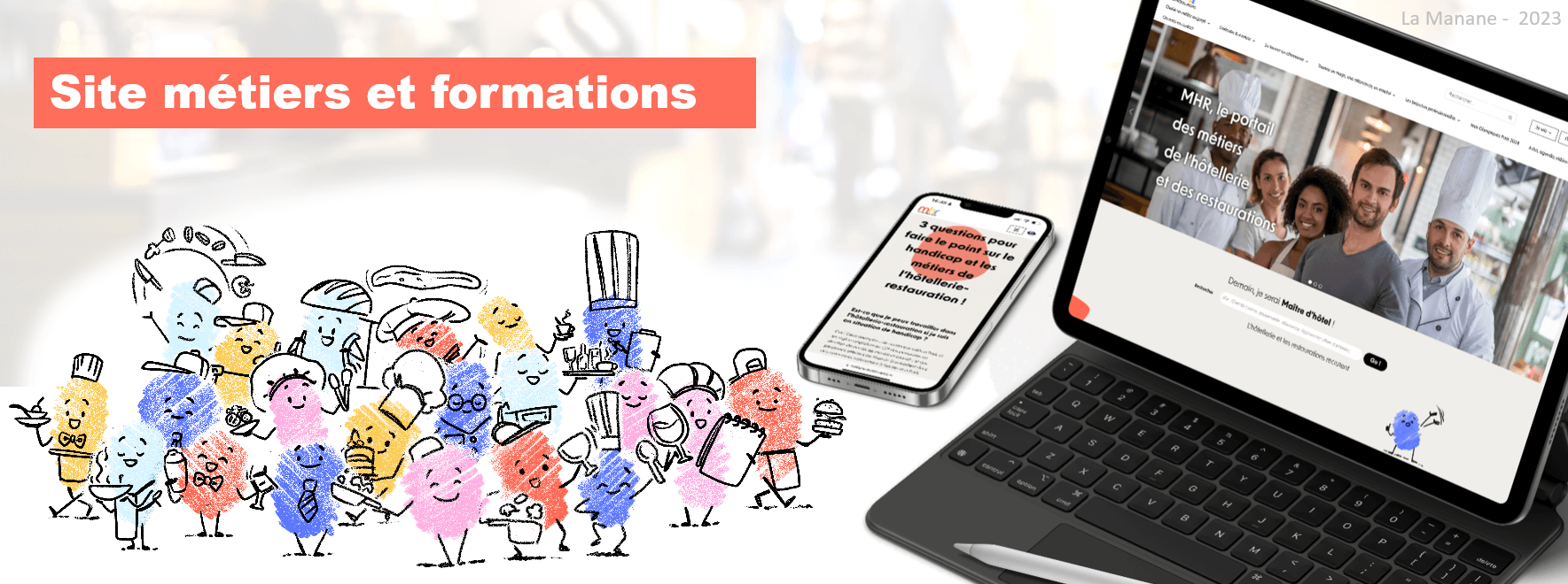 La Manane a été sollicitée par CERTIDEV pour produire le site MHR www.metiers-hotel-resto.fr afin de mieux promouvoir les carrières et formations dans l’hôtellerie et la restauration, particulièrement dans un contexte post-COVID et en prévision des besoins accrus en personnel pour les JO de Paris 2024. Trois objectifs principaux ont guidé cette refonte :